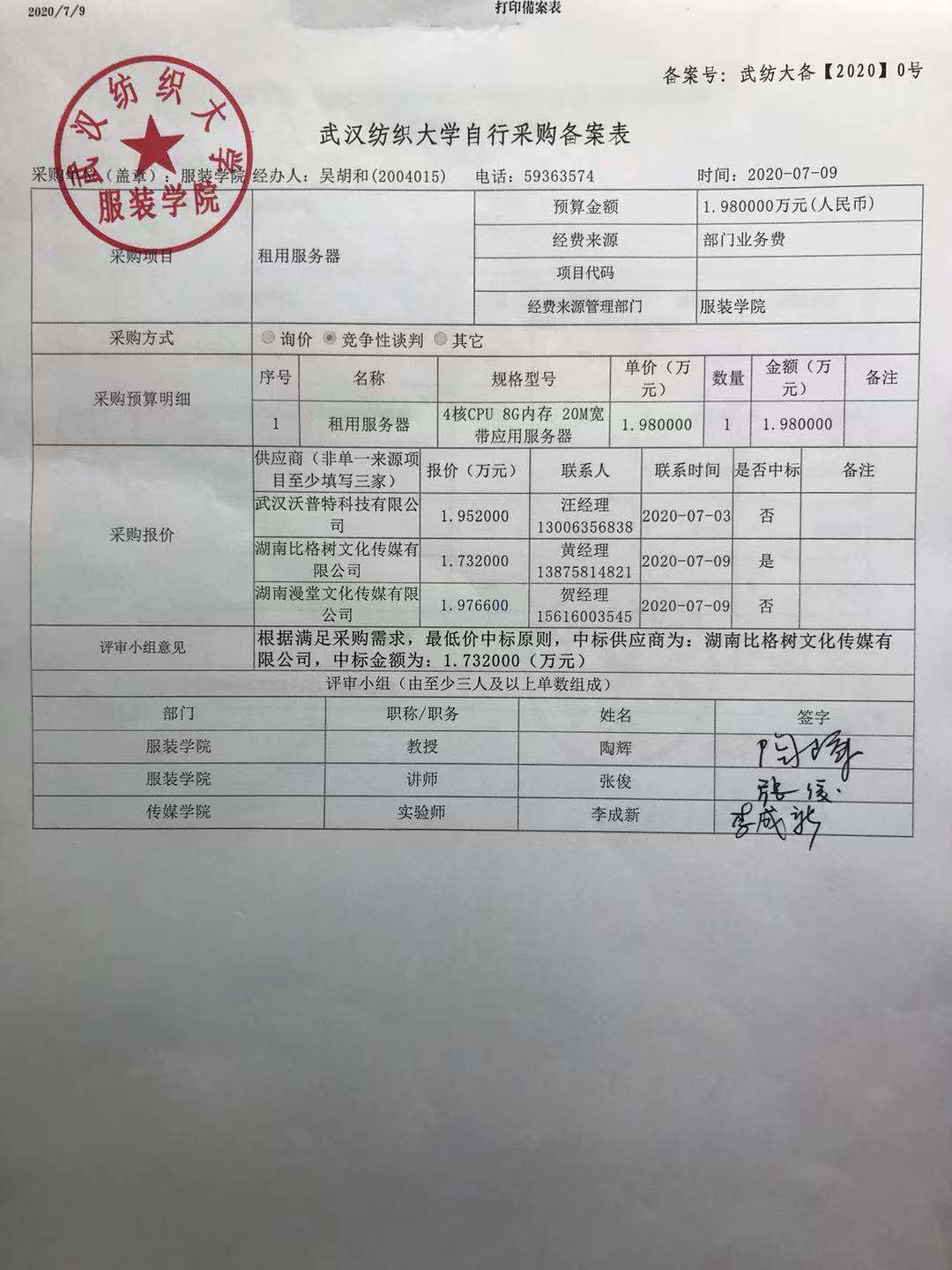 自行采购备案表公示