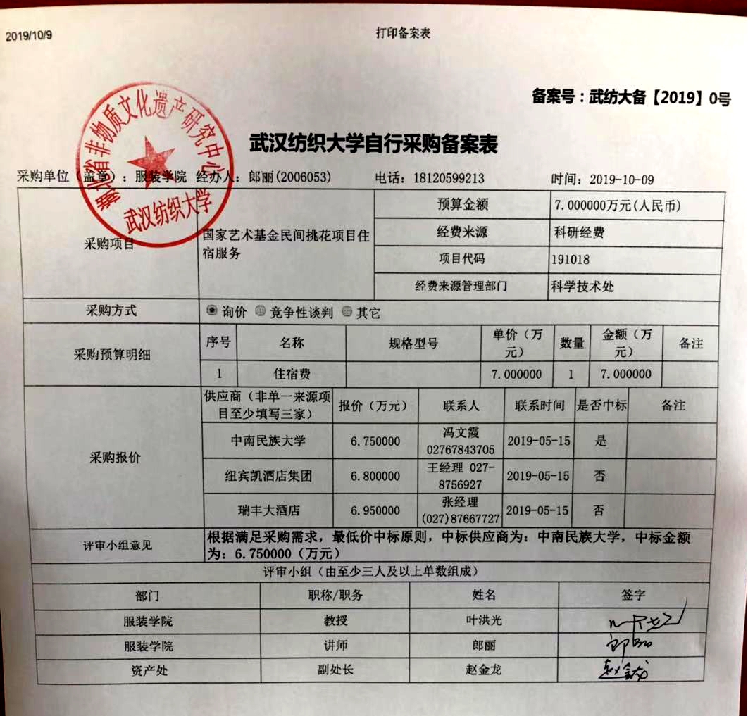 关于国家艺术基金民间挑花双创人才培养项目学员住宿服务的采购公示