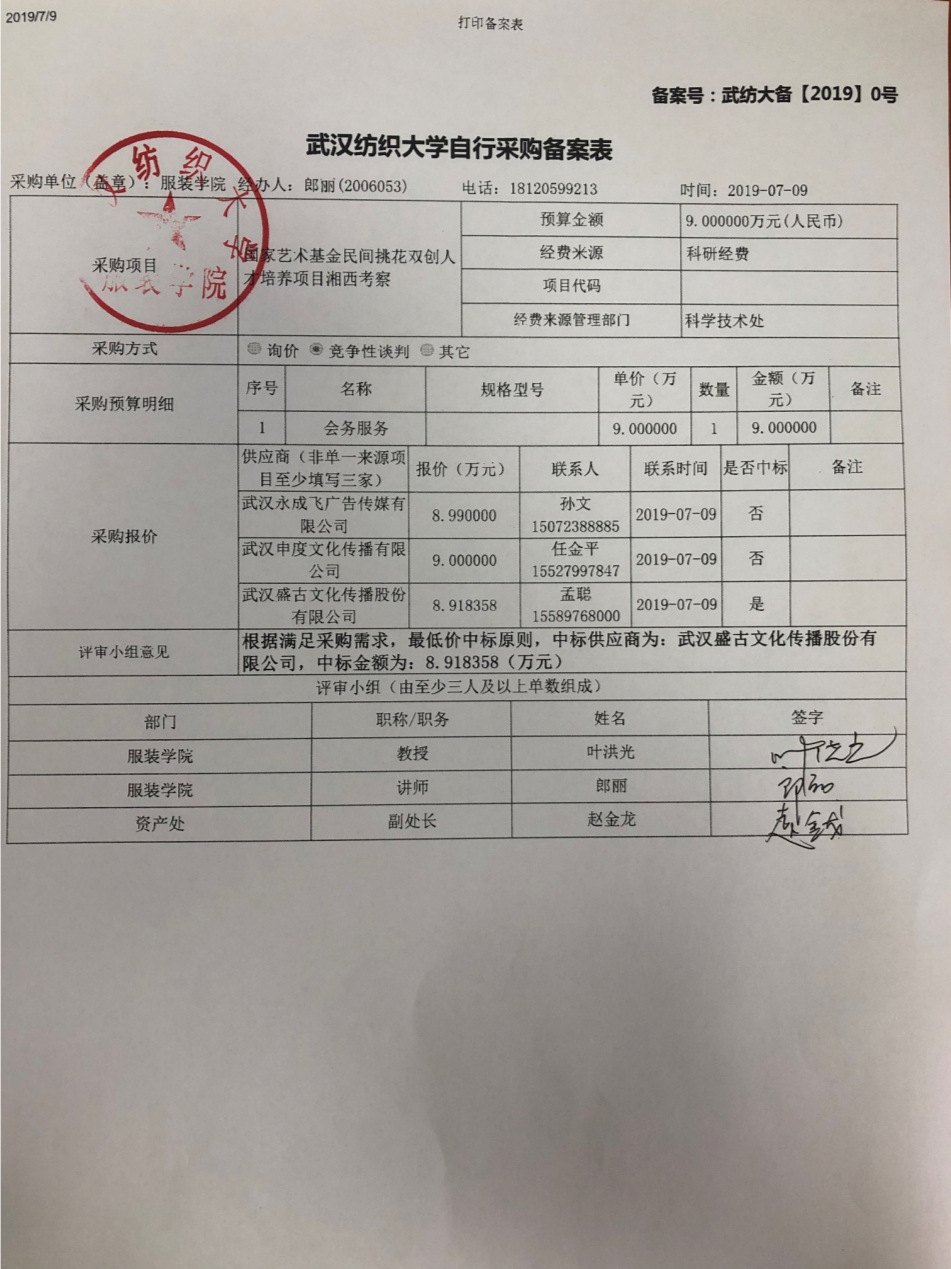 兹由于工作需要,英国上市公司官网365自行采购国家艺术基金民间挑花双创人才培养项目湘西考察会务服务项目,特此公示。公示期为2019年7月11日—2019年7月18日。