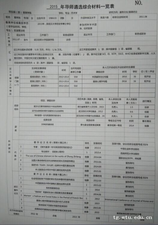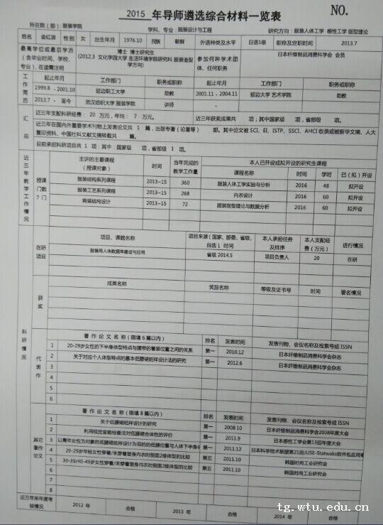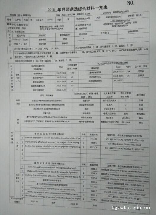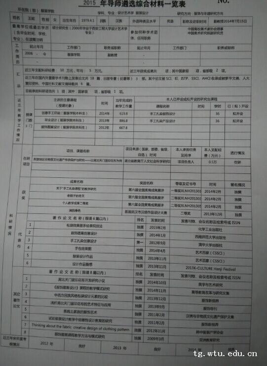 2015年导师遴选综合材料一览表