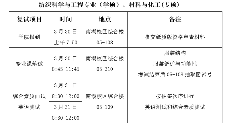 2.所有参加复试的考生于3月30日上午7:50在南湖校区综合楼05-108,05-109教室集中报到,并提交纸质资格审查材料。参加复试前,各位考生需准备好专业课考试所需的绘画笔、颜料、直尺等绘画作图工具。严禁考生携带原型板,如有携带原型板,以作弊论处。