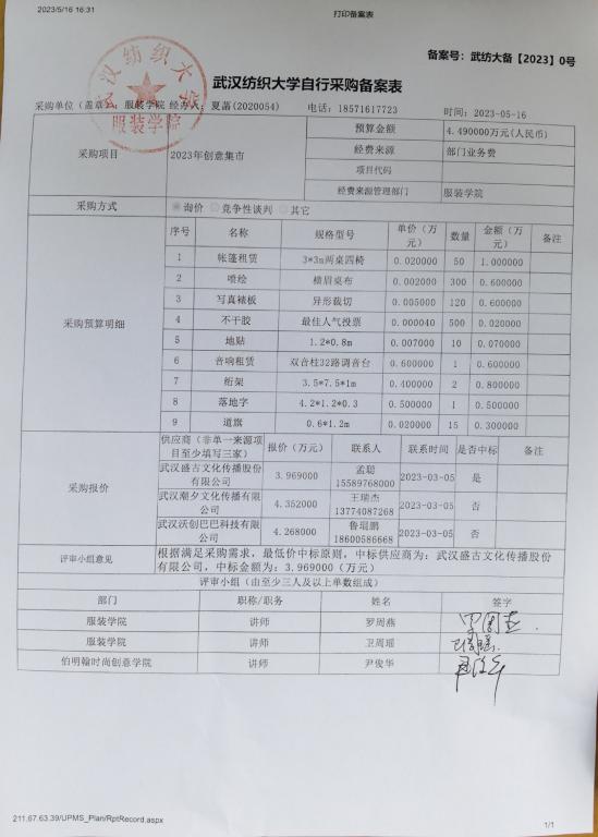 2023年创意集市自行采购备案表公示