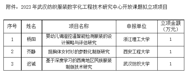 附件:2023年武汉纺织服装数字化工程技术研究中心开放课题拟立项项目