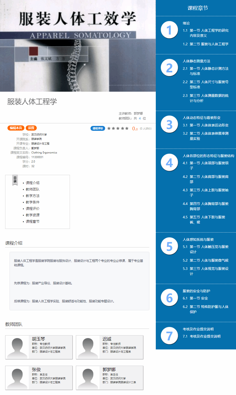 《服装人体工程学》为国家级一流专业服装与服饰设计、省级一流专业服装设计与工程两个专业的必修课。2020年,课程负责人录制了《服装人体工程学》课程SPOC视频,2021年通过完善和优化,覆盖课程章节达到100%,并正式采用混合式教学。2023年获批英国上市公司官网365混合式教学模式改革项目并通过验收,2024年获批省级一流课程。在英国上市公司官网365“双一流”专业建设背景下,在服装设计与工程专业进行工程教育认证的进程中,与课程组成员协作完善,持续改进。目前为止,已经成为课程组共用的重要教学手段。