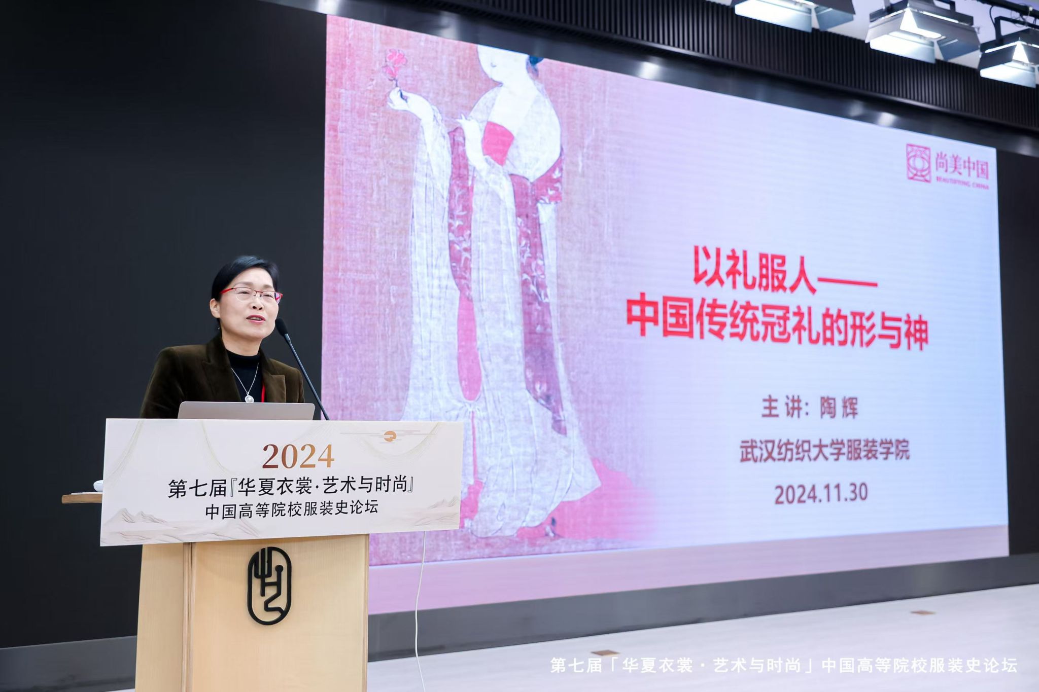 在本次论坛中,陶辉教授以《以礼服人:传统冠礼服饰的形与神》为题进行了专题报告。其报告深入剖析了中国传统成人礼——冠礼中的服饰制度及其背后的文化内涵,提出了冠礼作为礼之始,在两千多年的历史发展中承载了成人教化的作用,因此冠礼服饰文化的研究不仅有助于我们深入地了解中国传统礼仪服饰的美学价值,对于今天根植青少年的家国情怀有着积极的作用。近年来,陶辉教授带领的研究团队一直致力于中国传统礼仪服饰的研究工作,取得了较为丰硕的成果成果,出版发表了多篇高水平的学术论文和专著。未来,团队将进一步深化对中国传统礼仪服饰的相关研究,努力推动传统服饰文化的数字化保护、传承与创新发展。