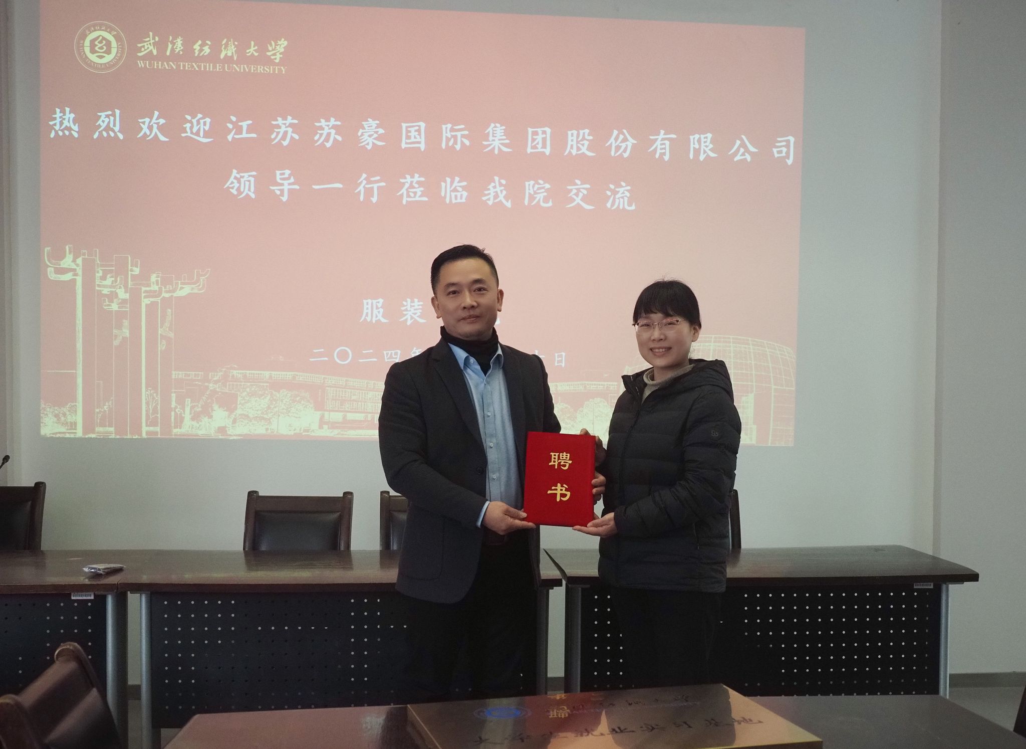 黄晓卫详细介绍了江苏苏豪国际的发展历程,企业凭借强大的技术实力和行业影响力,在行业内取得了显著成就。他期待与公司展开深度合作,为员工提供更多实践机会,提升其综合素质与创新能力,更希望通过双方共同的努力,培养出更多符合企业需求的高素质人才,为江苏苏豪国际的持续发展注入新动力。苏豪服装有限公司董事长于堂茂、苏豪丝绸有限公司总经理孙峰、苏豪国际集团设计部设计总监李鹏、苏豪国际集团投资部高级投资经理周浩锋先后就校企合作发言。