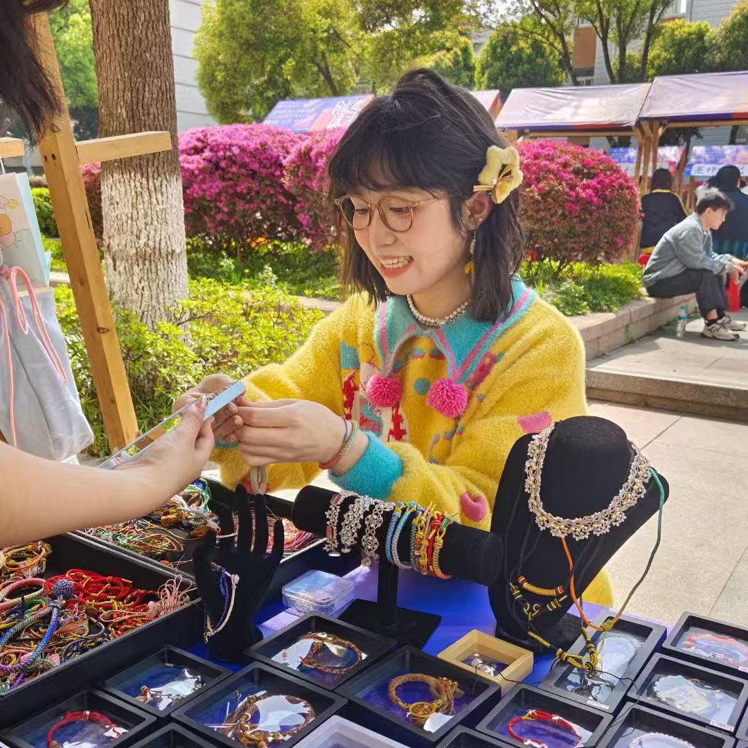 从国风流苏到扭扭棒小狗,从蓝染布包到螺钿耳环,纺大学子用双手诠释了“匠心”与“创新”的无限可能。这场创意集市,不仅是文化展示与交流、成长检验与庆祝,更是美育实践和非遗推广,弘扬传统与礼赞创新的绝佳平台,在鼓励创新、支持创新和表彰创新氛围中,不断增强新时代年轻人的文化自信。未来,这些年轻的手作人将继续以针线为笔、以创意为墨,书写属于Z世代的工艺传奇。