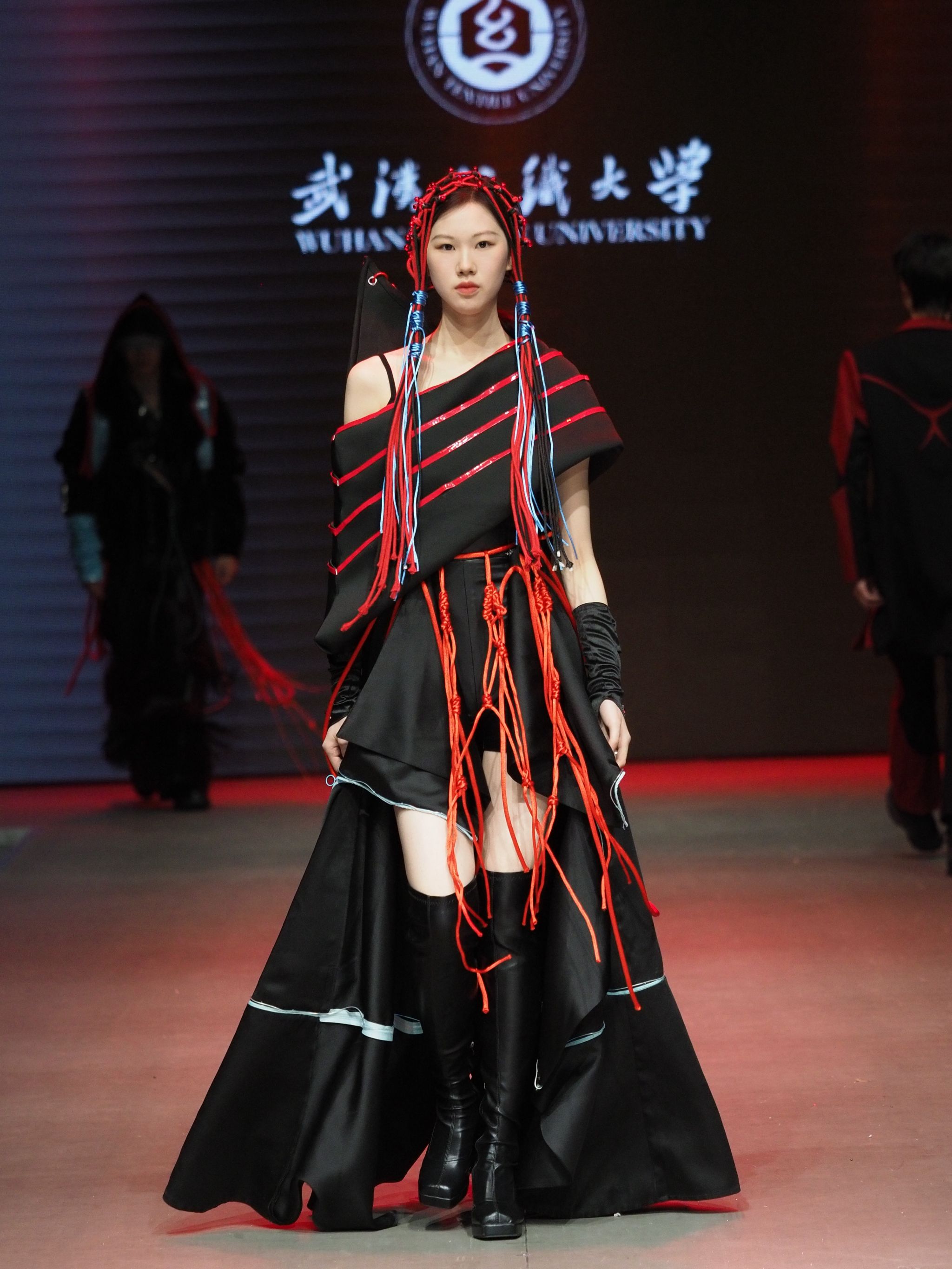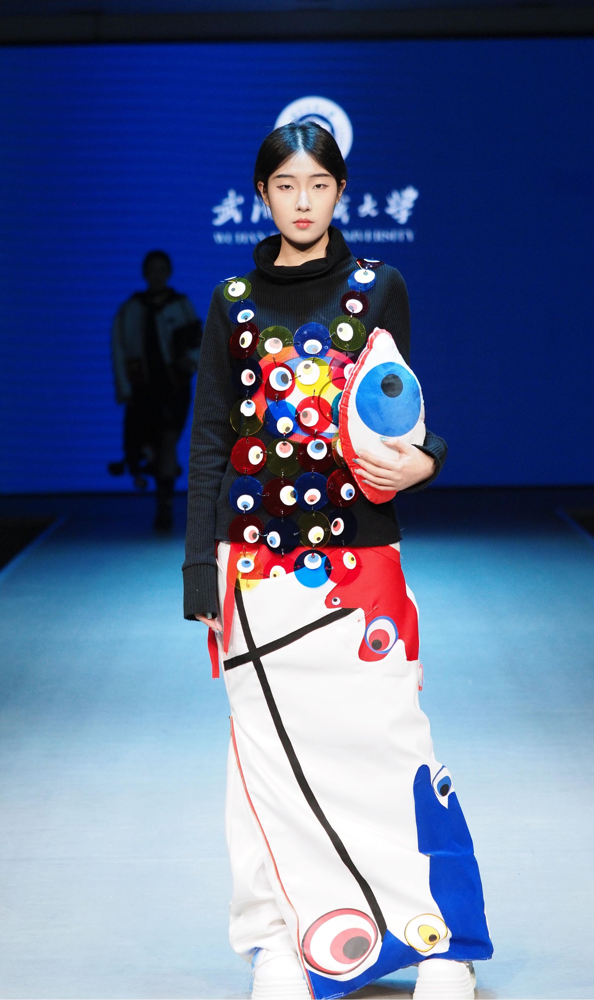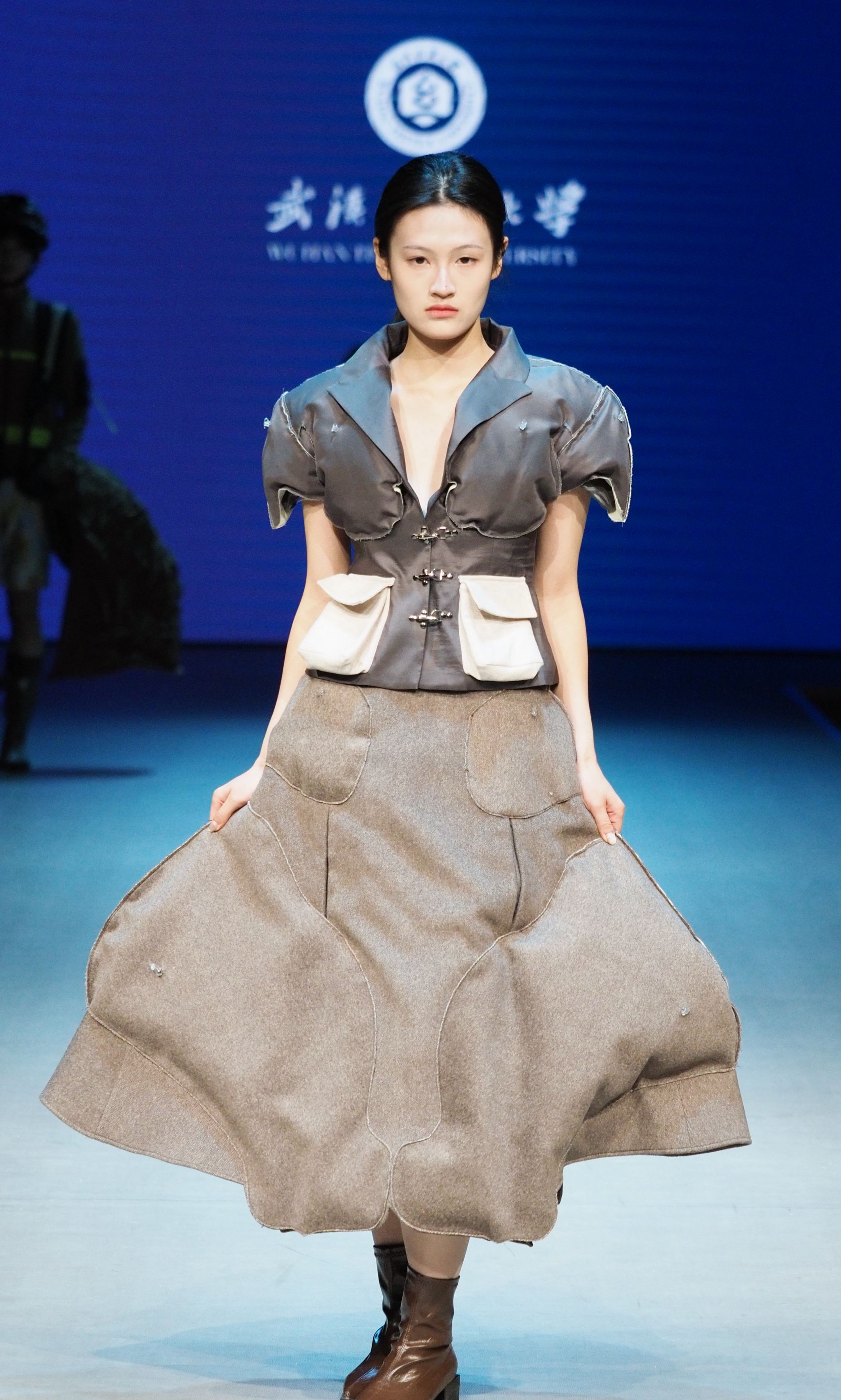 随后,在场领导、嘉宾和全体师生共同观看了来自2025届本科毕业生的优秀作品大秀,其中选出的优秀作品将于5月份奔赴中国国际老员工时装周进行展演和优秀作品评选。