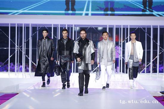 冯玲玲老师设计的《渗透》系列服装,以皮革,绡,针织网眼为主要面料,运用绗缝,数码印刷,拼接等设计手法,以白,银色,灰色到黑色的整体色彩过渡,通过面料的混搭,色彩的推移,款式的渐进,在统一中追求变化,在变化中寻求统一,将作者对北派服饰的理解于细微处传达出来。