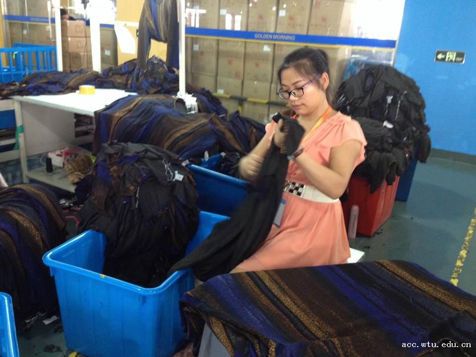(在服装生产车间包装服装)                                           (在服装生产车间整理服装)