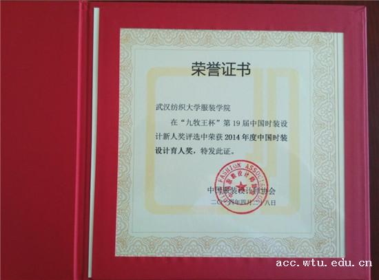 公司连续第十五年荣获中国服装设计“育人奖”