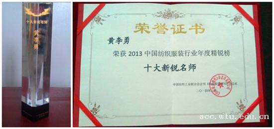 服装教师黄李勇荣膺“中国纺织服装行业年度精锐榜—十大新锐名师”