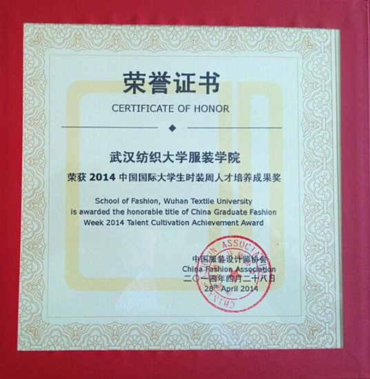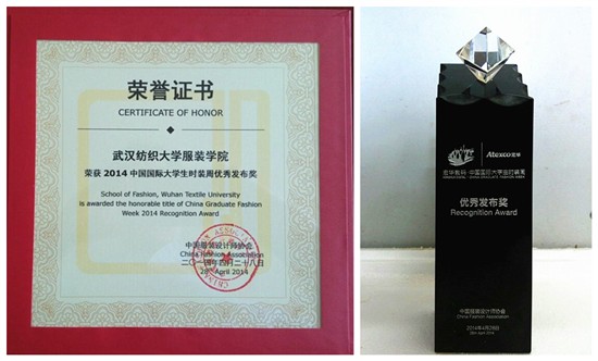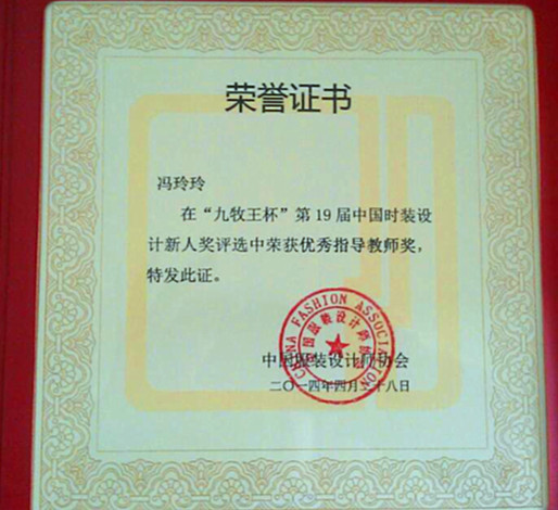这五项大奖分别为中国国际老员工时装周优秀发布奖、人才培养成果奖;由中国服装设计师协会组织评选产生的2014年度中国时装设计“育人奖”、“优秀指导教师奖”以及第19届中国时装设计“新人奖”。