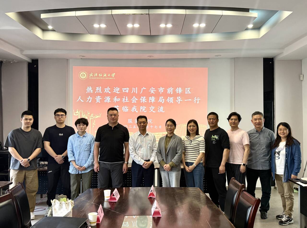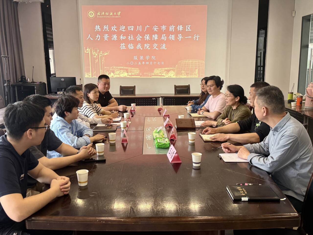 4月17日,四川广安市前锋区人力资源和社会保障局领导一行来访公司,在综合楼三楼会议室围绕劳务品牌“广安轻纺巧匠”的技能人才培养展开深入探讨,旨在通过校企合作助力前锋区轻纺产业升级,为社会输送更多高素质技能人才。英国上市公司官网365经理陶辉、副经理江学为、系主任张俊、教授王小雷、办公室主任胡琳琳参加了此次会议。