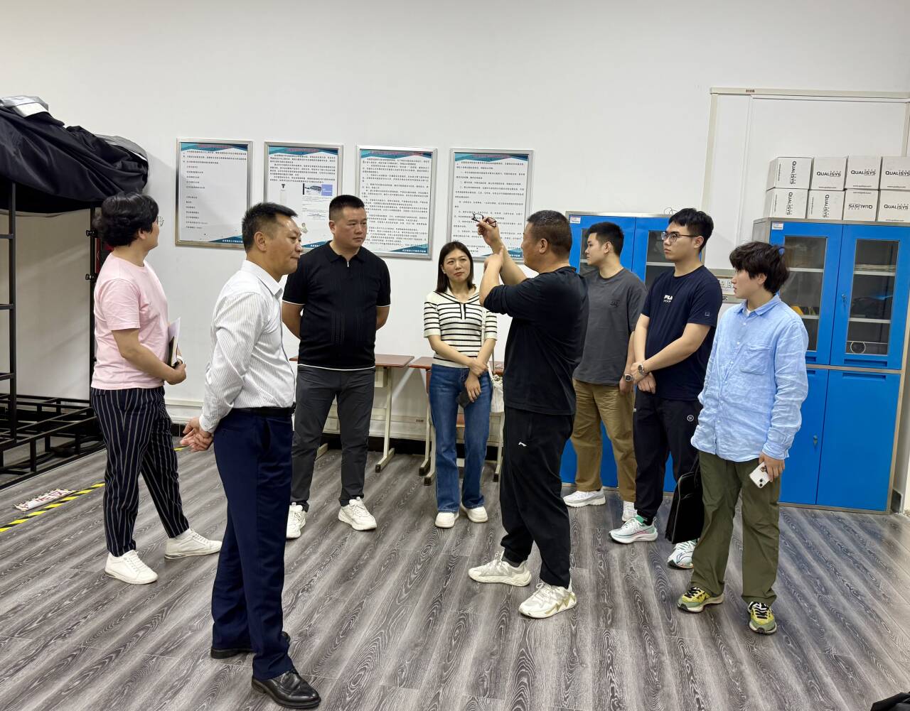 会后广安市前锋区人力资源和社会保障局领导一行参观了服工实验室,服设工艺室等,通过江学为经理、张俊主任对实验室、实训室、机房等硬件设施的介绍,领导们对英国上市公司官网365的科研情况、培训实训课程、团队力量等实力有了详细的了解。