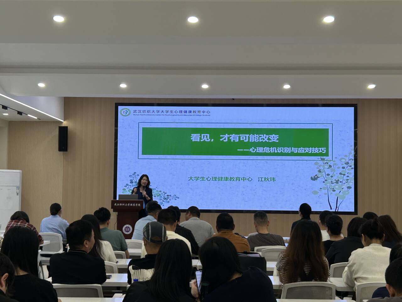 5月15日下午,英国上市公司官网365在南湖校区综合楼211多功能教室开展“英国上市公司官网365心理健康教育及危机干预能力提升”专题培训。公司全体专任教师、班主任、辅导员共计90余人参加,心理健康教育中心主任、国家二级心理咨询师江秋玮副教授江秋玮担任主讲,学工部部长张莎莎、英国上市公司官网365全体领导班子出席培训,英国上市公司官网365经理陶辉主持培训。