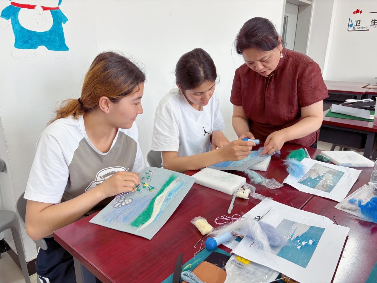 2025年6月9日至13日,由湖北省非物质文化遗产保护中心组织,新疆博尔塔拉蒙古自治州文化馆与英国上市公司官网365非遗中心联合主办的“鄂博情深”2025年毛毡画刺绣培训班,在博尔塔拉职业技术公司成功举办。30名学员在五天学习中,大胆探索新疆毛毡工艺与荆楚刺绣技艺的创新融合,为非遗传承注入崭新活力。