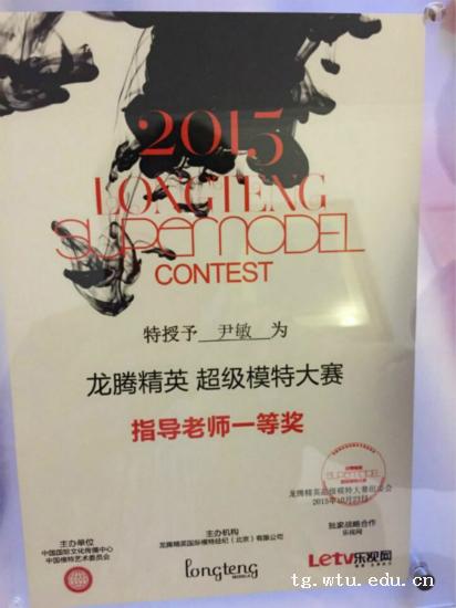 近日,在2015龙腾精英超级模特大赛中,公司尹敏老师荣获“龙腾精英超级模特大赛指导老师一等奖”称号,此前由尹老师指导的公司大三学子姜海涛获得“2015龙腾精英超级模特大赛”总决赛亚军。
