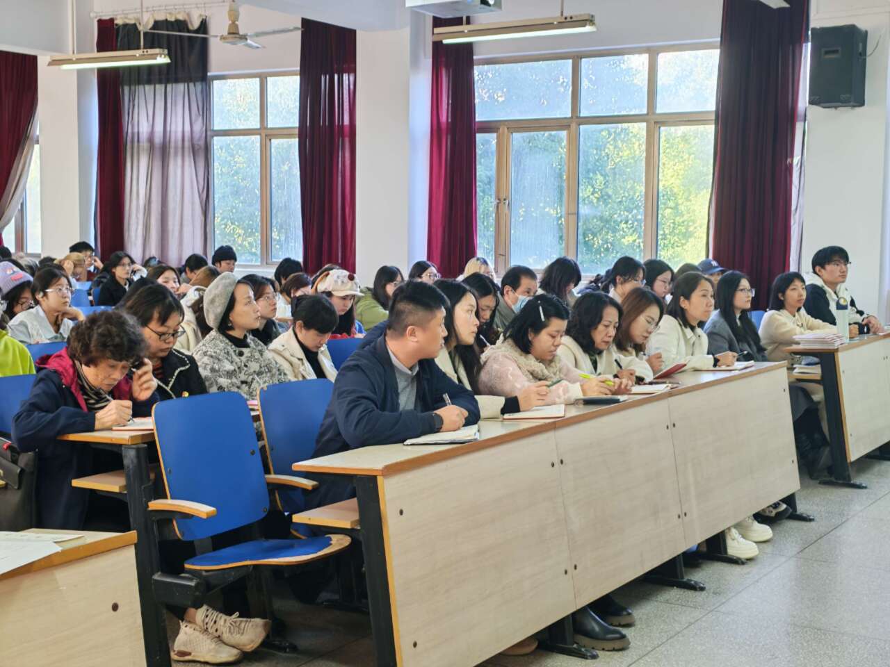 活动现场,百余名学子在杜书记的引领下,齐声诵读《大学》经典段落,声音洪亮激昂,展现了纺大学子对经典的敬畏之心和蓬勃朝气。在思想交流环节,同学们踊跃提问,杜书记就大家关心的问题进行了耐心细致的解答,现场氛围热烈。