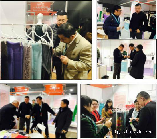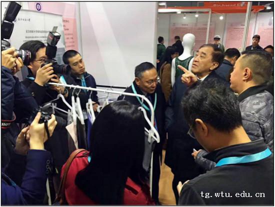 展位现场,中国纺织工业联合会原会长王天凯、副会长徐迎新,中国纺织服装教育学会会长倪阳生等有关领导出席现场,并与公司贾琦教授进行了深入交流,几位领导对公司参展产品的设计、工艺流程及色彩搭配等各个方面都给予了高度关注和肯定。