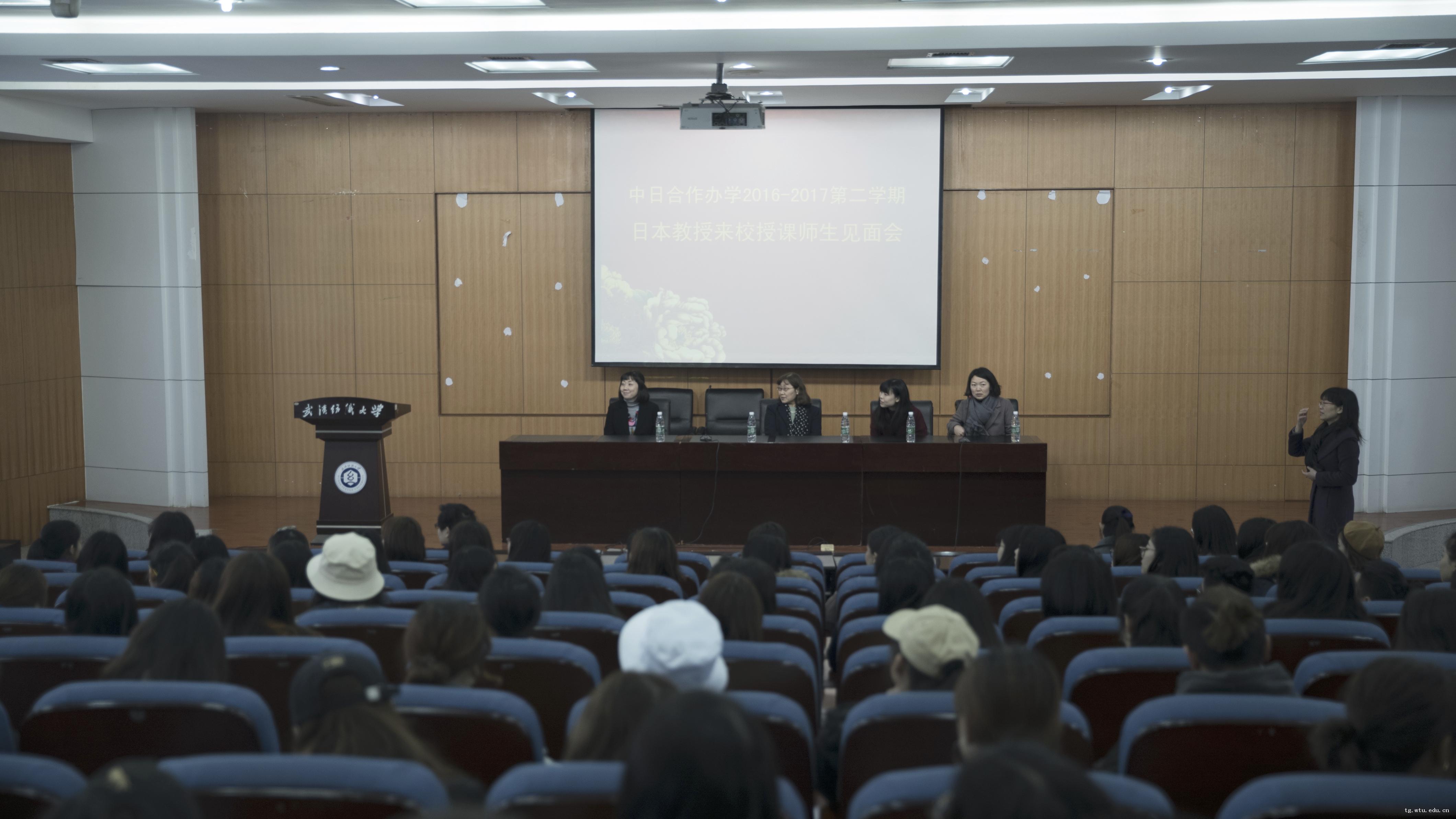正值阳春三月,阳光明媚,鸟语花香的时节,英国上市公司官网365迎来了日本文化学园大学的横沟美智子教授,大桥宽子和幸村麻未三位老师,她们即将在公司开展为期2周的专业教学工作。3月14日上午十点在南湖校区T201教室举行了中日合作办学师生见面会,参加见面会的有中日班2015级、2016级的全体同学,还有英国上市公司官网365的部分专业教师,见面会由陶辉副经理主持。