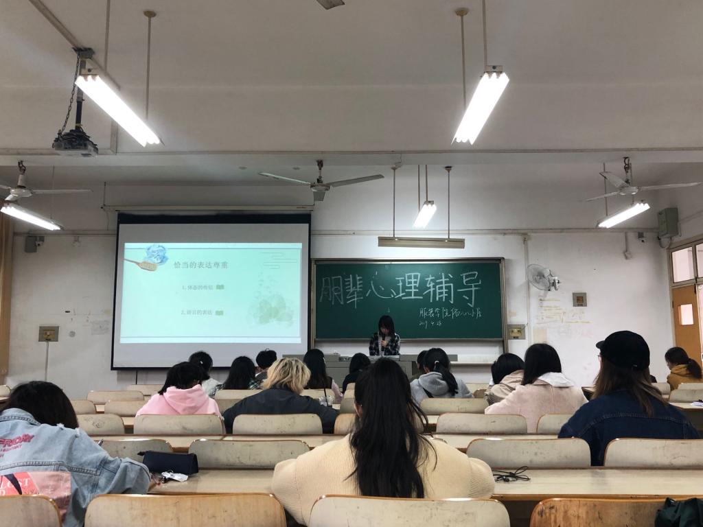 曾有人说“把孩子和他们同龄人隔离,将给他们的心灵带来无法磨灭的创伤”,由此可见,同龄伙伴的地位不容忽视。朋辈辅导就是基于这种情况而产生的一种特殊的积极的心理健康教育形式,其参与的主体是同龄的咨询者和被咨询者,它是专业心理咨询的重要补充。姜玲从“什么是朋辈辅导”、“为什么要进行朋辈辅导”、“朋辈辅导要做什么”、“朋辈辅导中要注意些什么”四个方面展开了此次培训。此外,姜玲还结合了实例教学视频,向参加培训的同学传授了更多朋辈辅导的知识与技巧。