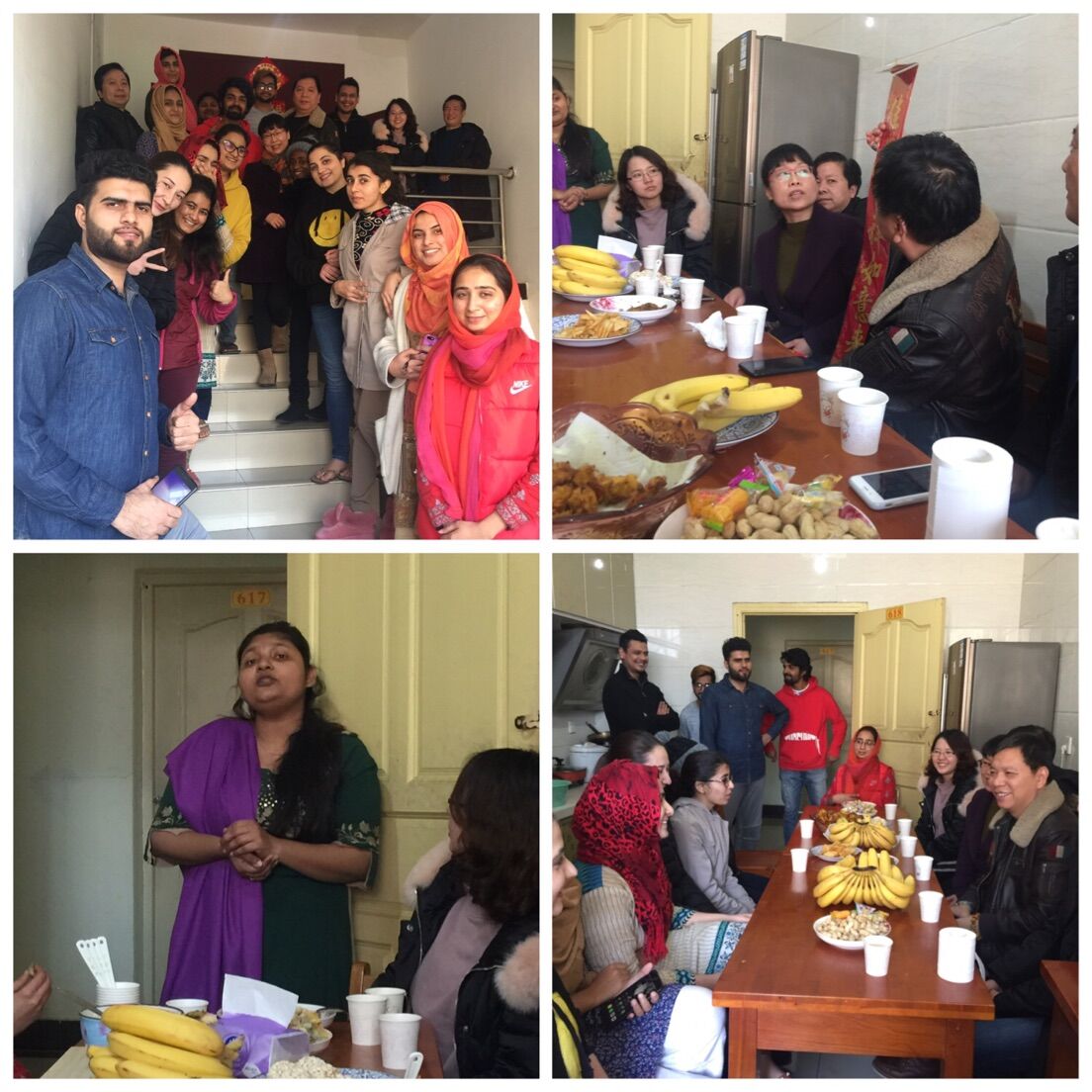 南湖校区8栋职工公寓,公司领导与职工们欢聚一堂,共庆佳节。陶辉经理代表公司详细的询问了在校职工的生活和学习情况,鼓励大家利用寒假做好学业生涯的总结和规划,向职工们送去诚挚的节日问候。来自不同国家不同地区的职工精心烹制地道家乡美食,饱含热情演唱极具异域风情的家乡歌曲,现场气氛其乐融融。最后熊兆飞书记向职工介绍了我国农历新年的习俗,期望他们了解和传播中国传统优良文化,并和职工一起贴对联,让职工感受到国际大家庭的温暖。