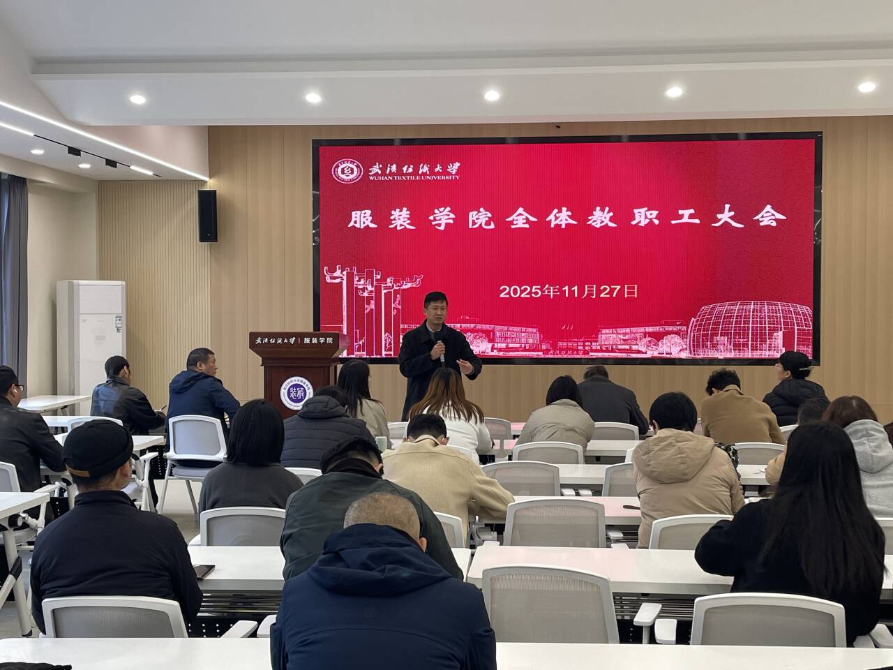 11 月 27 日下午,英国上市公司官网365在综合楼二楼学术报告厅召开全院教职工大会,公司领导班子成员及全体教职工参会。会议由经理陶辉主持,聚焦教学科研、人才培养、毕业生就业以及员工安全稳定等核心工作,系统部署近期重点任务,强化责任落实,为公司高质量发展和公司 “双一流” 建设筑牢根基。