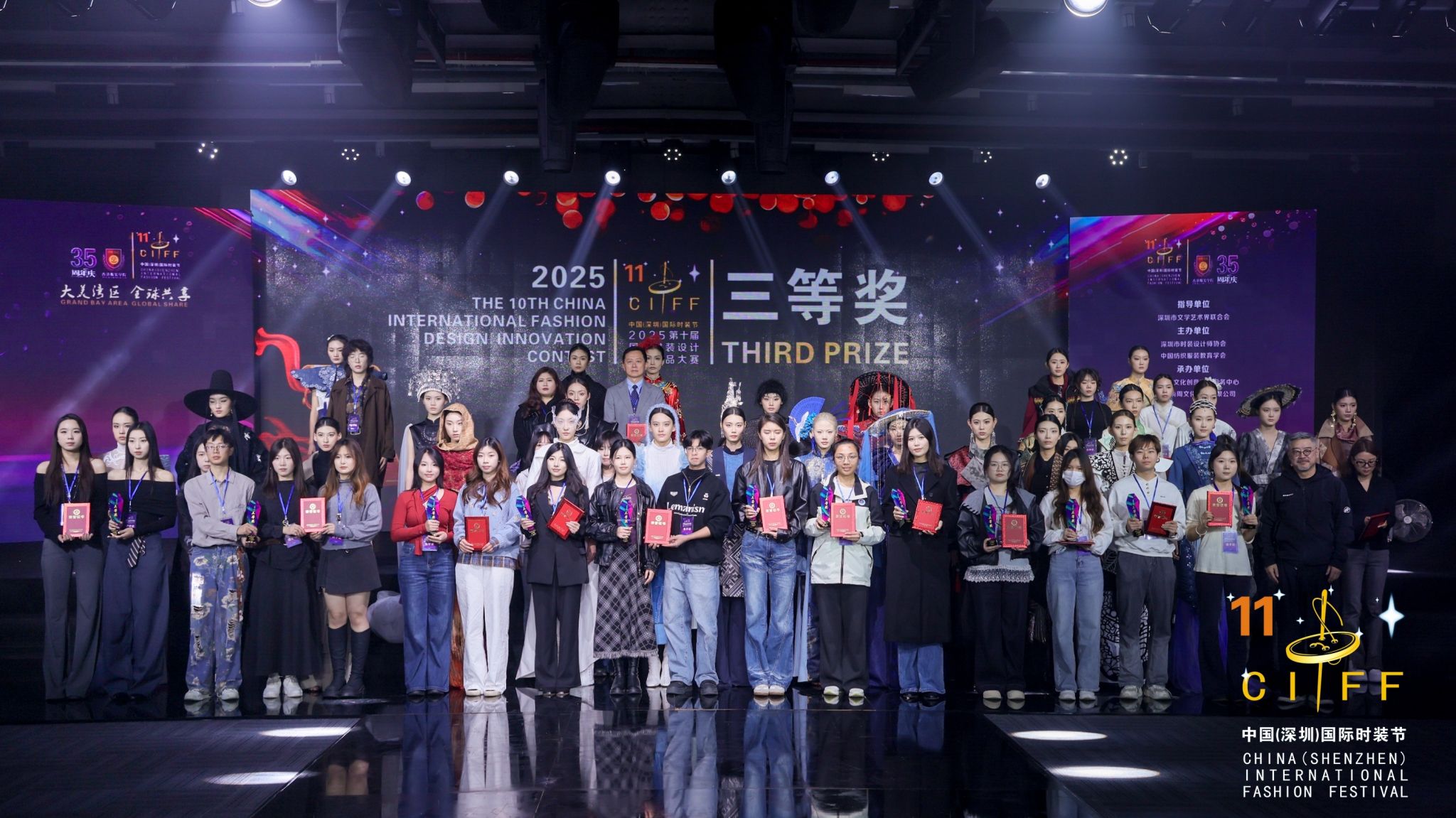 本届大赛由深圳市时装设计师协会、中国纺织服装教育学会联合主办,深圳市欧纺服装研究院、深圳时尚周文化传播有限公司、广东时尚文化创意产业服务中心共同承办。自创办以来,大赛始终聚焦“国潮表达”“非遗创新”“绿色设计”及“智能转化”等行业前沿议题,坚持以高水准、专业化的竞赛机制,推动中国原创设计力量的培育与发声。它不仅成为辐射全国的设计师孵化平台,更逐步构建起以文化自信为根基、以科技融合为驱动、以市场应用为导向的现代时装设计人才培养与赛事体系。