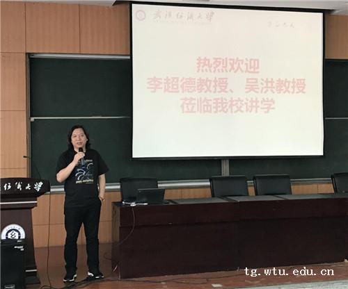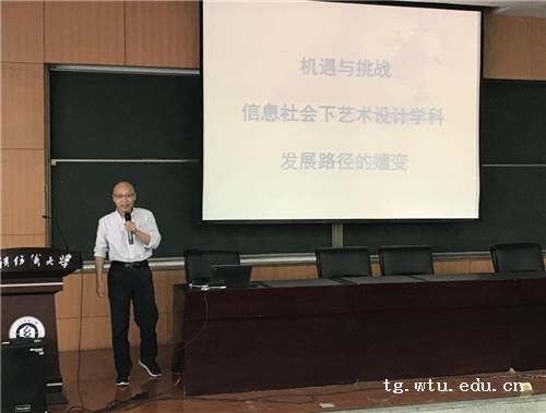熊兆飞对吴宏教授与李超德教授的到来表示热烈欢迎,并向在场的师生隆重介绍两位时尚设计界大咖。深圳大学艺术设计公司经理吴洪教授首先开讲,吴教授以《机遇与挑战——信息社会下艺术设计学科发展路径的嬗变》为题,讲述了人类从农业文明发展到现在的历史进程中,艺术形式与生产的联系;提出信息化带来的改变,认为设计业由边缘化自中心转变;最后吴教授从信息社会的特征,展示了设计结构变化的过程。随后,李超德的演讲则更加关注艺术教育,他用英国圣马丁公司的话:“我们不教授什么,只教授生活方式。”与在座师生一起分享艺术教育的内核,并很好的诠释了教育除了智力因素,还有非智力因素也非常重要;最后,李教授阐述了时尚、流行与艺术教育的联系,提出时尚是一种生活方式,流行是善意的结果,是传递艺术文化教育的价值观。