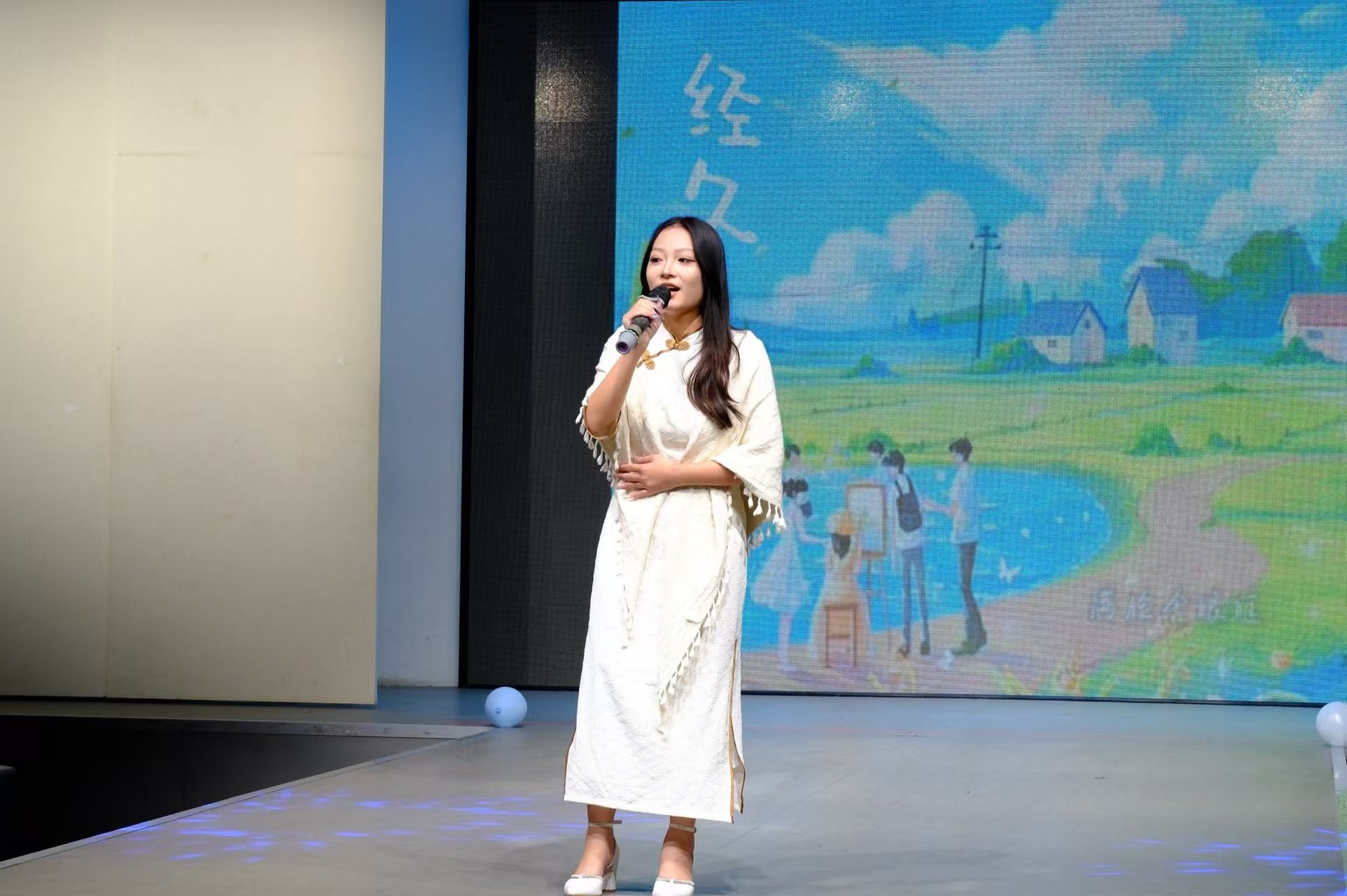 这场属于青春与荣光的盛典,迎来了最为动人的时刻。全场目光汇聚之处,陶经理缓步走向舞台中央,以饱含深情的话语做最后的致辞。致辞的余温仍在表演厅萦绕,悠扬的音乐前奏已然响起。在众人惊喜的注视中,陶经理亲自献唱经典《万水千山总是情》。她温厚深情的嗓音,道尽了一位教育者对莘莘学子跨越“万水千山”的培育之切、赞赏之情与期盼之深。这首歌,更是将今夜的万千情感尽数升华。