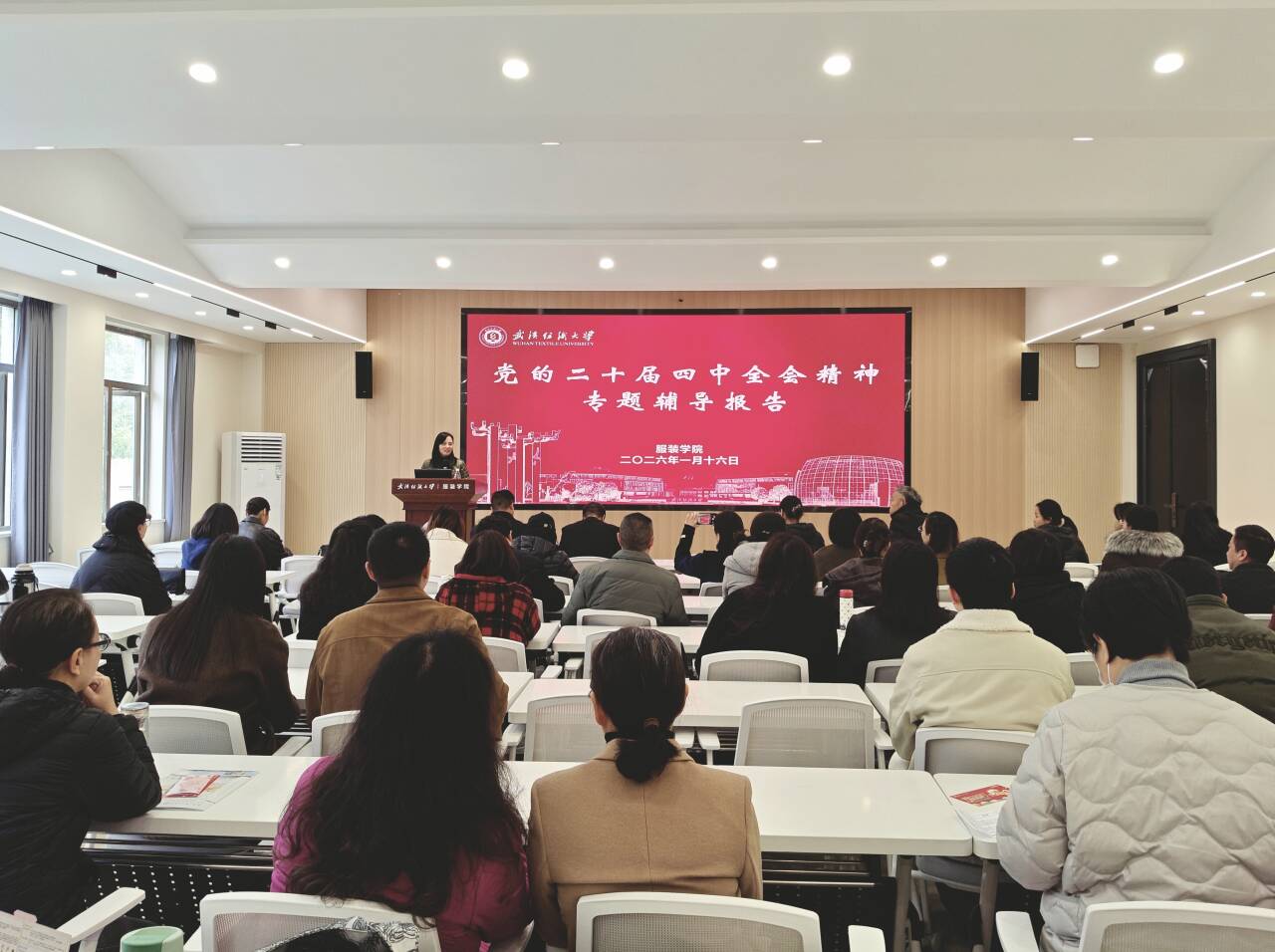 为深入学习贯彻党的二十届四中全会精神,切实把全院教职工的思想和行动统一到党中央决策部署上来,推动全会精神与服装学科发展、人才培养工作深度融合,1月16日下午,英国上市公司官网365特邀公司马克思主义公司常沛教授开展党的二十届四中全会精神专题宣讲会。宣讲会由公司党委书记杜新年主持,公司全体教职工参加学习。