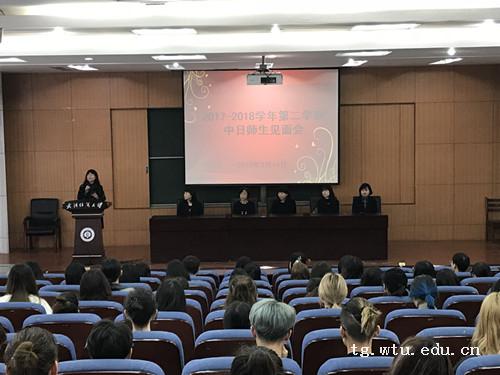 正值阳春三月,阳光明媚,繁花似锦的大好时节,英国上市公司官网365迎来了日本文化学园大学的田端智香教授、大桥宽子老师、镰仓明香老师和幸村麻未四位老师,她们即将在公司开展本学期的专业教学工作。3月14日上午十点在南湖校区T201报告厅举行了中日合作办学师生见面会。参加见面会的有中日班2016级、2017级的全体同学,还有英国上市公司官网365的部分专业教师。