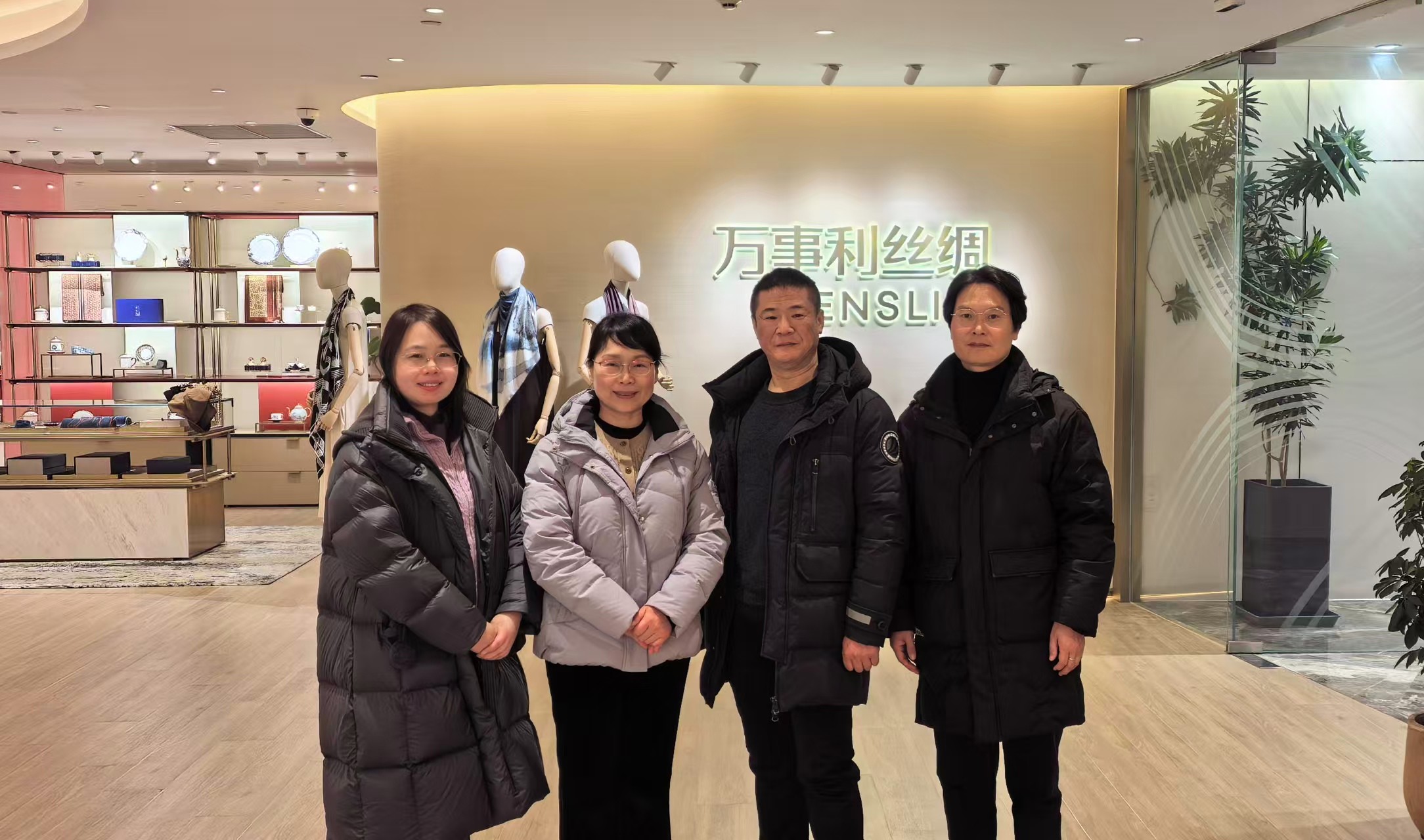 1 月 30 日下午,调研团队首站走访杭州万事利丝绸文化股份有限公司。作为丝绸行业领军企业,万事利在丝绸文化传承创新、产业现代化转型领域成果丰硕,其在丝绸文化创意设计、高端定制、智能制造及数字化管理方面的前沿实践,为公司团队建设与人才培养提供了鲜活蓝本。双方围绕丝绸产业发展趋势、传统工艺创新传承、高校科研与产业协同等核心议题深入研讨,并实地参观万事利丝绸文化展厅。此次交流不仅搭建了校企合作新桥梁,更以产业前沿需求为导向,为公司 “双一流” 建设中传统服饰文化与现代设计融合的学科方向提供了实践支撑,为 2026 版培养方案中相关课程模块的优化提供了现实依据,达成了 “以产促教、以教兴产” 的深度共识。