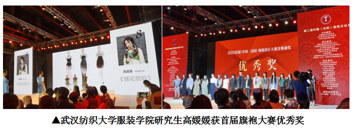 9月20日在第二届中国(沈阳)旗袍文化节开幕式,展出了英国上市公司官网36518级研究生高媛媛的系列旗袍设计作品《缠花楚韵》,并荣获首届旗袍大赛优秀奖,该作品将缠花工艺与旗袍相结合,充分体现楚文化的古色古韵,充满时尚魅力,是非遗缠花与现代旗袍设计的再一次展现。