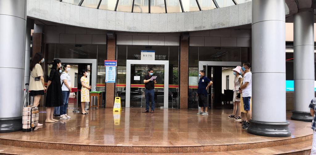 本次演练共设置员工正常入校后,公司教师志愿者对接环节、员工前往尚知楼排队环节、员工毕业手续办理环节、有员工体温异常的应急处理环节等内容,由公司辅导员老师模拟员工按照各环节设计流程、行为规范依次开展。