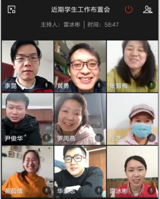 会上,各年级辅导员及兼职辅导员就近期开展的工作分别进行了汇报。2016级辅导员张智梅老师着重谈到,2016级员工作为今年的应届毕业生,就业是第一要务,恰逢这次疫情,部分员工已找好的就业单位出现单方面解约情况,张老师对此表示非常担忧,希望相关领导能出面与有关企业进行协调,努力推动毕业生就业工作的有效开展;2017级辅导员李昆老师讲到,近期的工作主要是防疫期间员工日报平安及各员工组织线上活动的有效引导与开展;2018级辅导员尹俊华老师着重强调了发展入党积极分子、发展党员、党员支援社区防疫及线上动员员工入伍等事宜;2019级辅导员罗周燕老师主要谈到了疫情期间员工心理健康教育、受疫情影响的家庭经济困难员工信息统计上报等工作。此外,各兼职辅导员还从各员工组织开展活动、员工线上主题教育、员工疫情防控期间素材收集宣传报道、员工党员发展等方面提出了相关的建议。