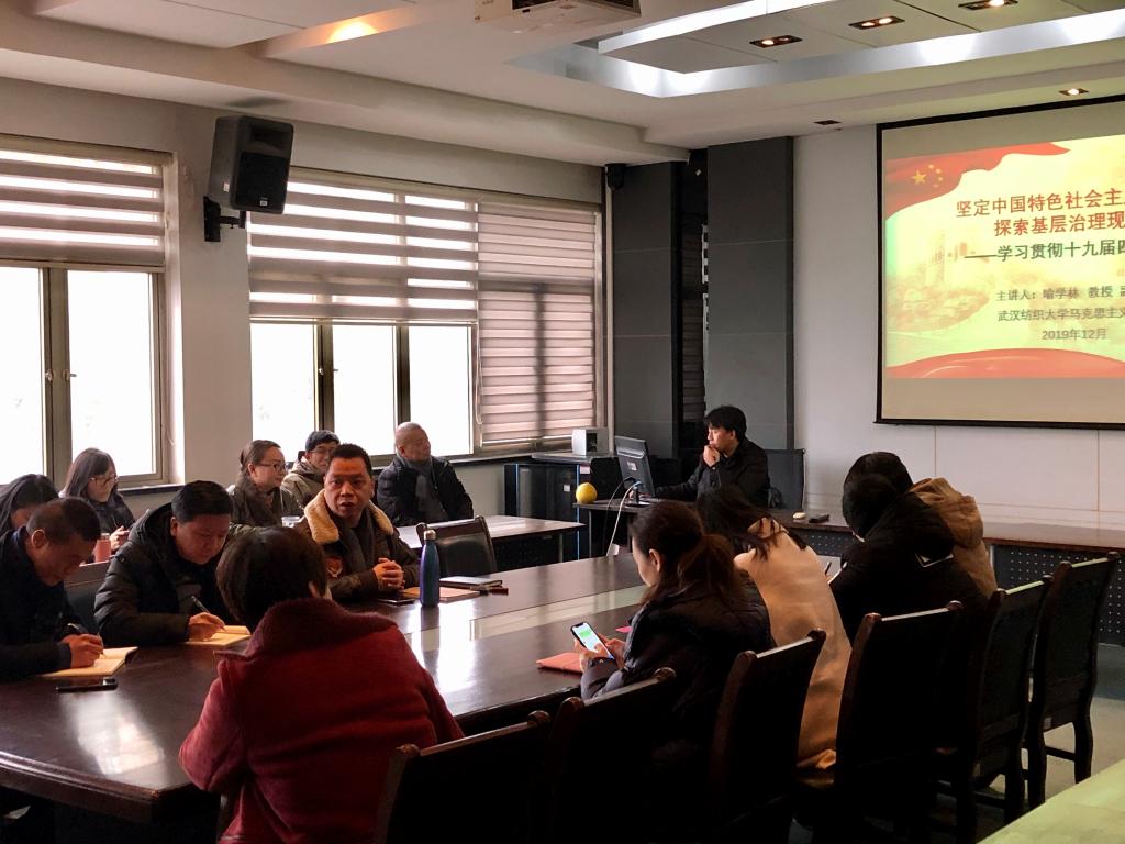 1月2日下午,英国上市公司官网365举行了党的十九届四中全会精神宣讲会。集团十九届四中全会精神宣讲团成员、马克思主义公司副经理喻学林教授以“坚定中国特色社会主义制度自信,探索基层治理现代化的特色制度”为主题向英国上市公司官网365全体教职工及员工党员代表作宣讲报告。会议由公司党委书记熊兆飞教授主持。