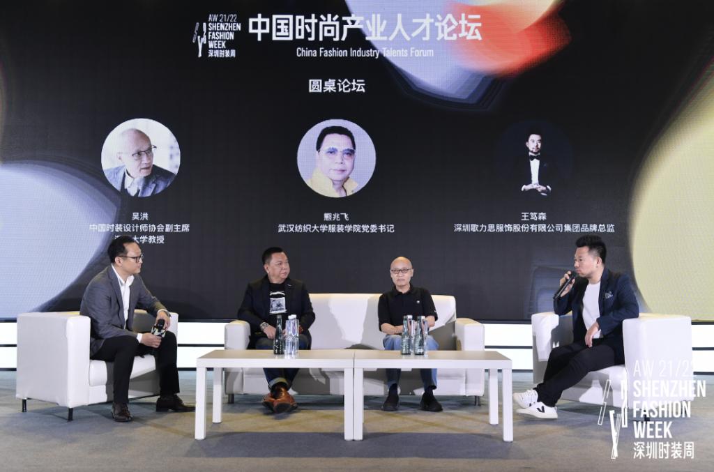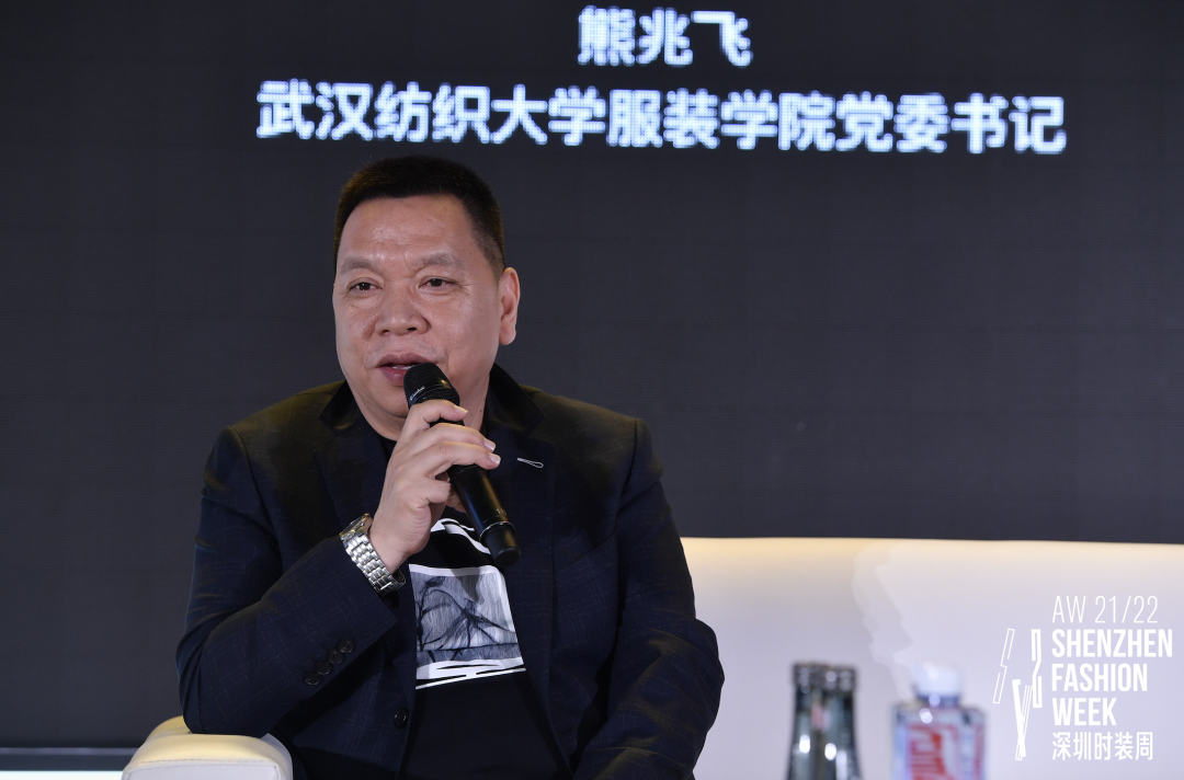 4月18日,中国时尚产业人才论坛在AW 21/22 深圳时装周期间举行,本届论坛由深圳市服装行业协会学术委员会主办,论坛主题为“时尚为城市发展赋能”。众多时尚界专家、学者、时尚企业精英、商业结构管理者汇聚欢乐海岸OCT创意展示中心,共同探讨在新时代下时尚如何为城市发展赋能,时尚文化如何塑造城市气质,以及时尚消费如何促进城市社会消费等话题。公司党委书记熊兆飞教授受邀出席论坛,并与深圳大学吴洪教授、深圳歌力思服饰股份有限公司集团品牌总监王笃森共同参与了圆桌论坛环节,探讨城市如何在教育、时尚的交融中更加繁荣。
