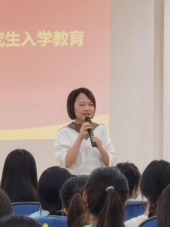 接下来,陶经理再次对各位新生的到来表示欢迎,同时对研究生学制、培养方式及管理教育工作进行了全方位介绍,详细解读了研究生就读期间的课程学习、论文开题、中期考核、毕业设计、论文盲审及答辩关键节点,并提出几点建议和希望,她建议同学们能多与导师沟通交流,建立和谐的师生关系,希望同学们在未来的三年里,珍惜韶华,勇于探索,夯实基础,厚积薄发,让自己的研究生生活像彩虹一样多彩。