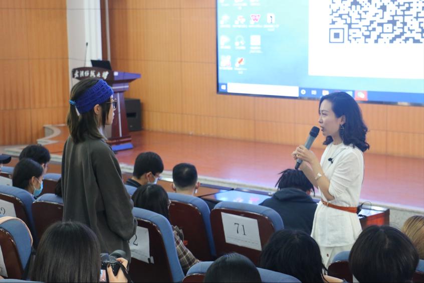 在听众互动环节, 现场积极提问, 刘蔓女士依次热情解答。她强调设计的灵感不是空穴来风,而是对生命的思考,以及个人人生价值观的建立,应该用爱熔铸作品,用爱传播文化。