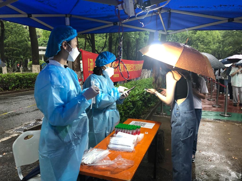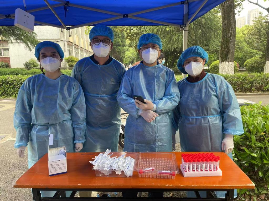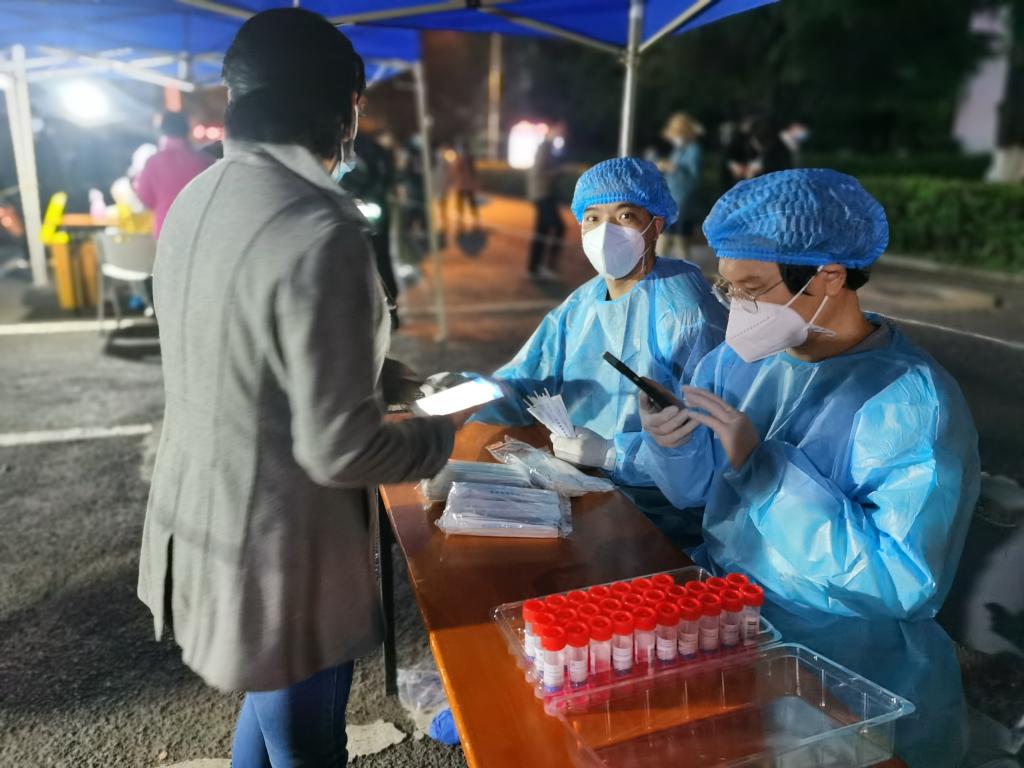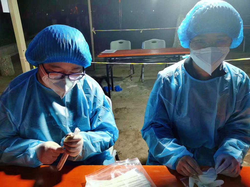 (4月15日晚,紧急加增核酸检测,张俊老师、吴胡和老师临危受命,坚守疫情防线)
