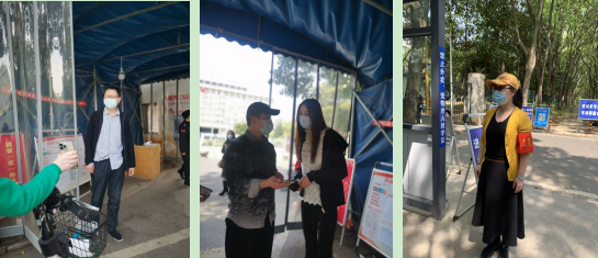 (4月19日,刘奕、王妮、李斌、宁婧四位老师在烈日炎炎下值守五个小时)