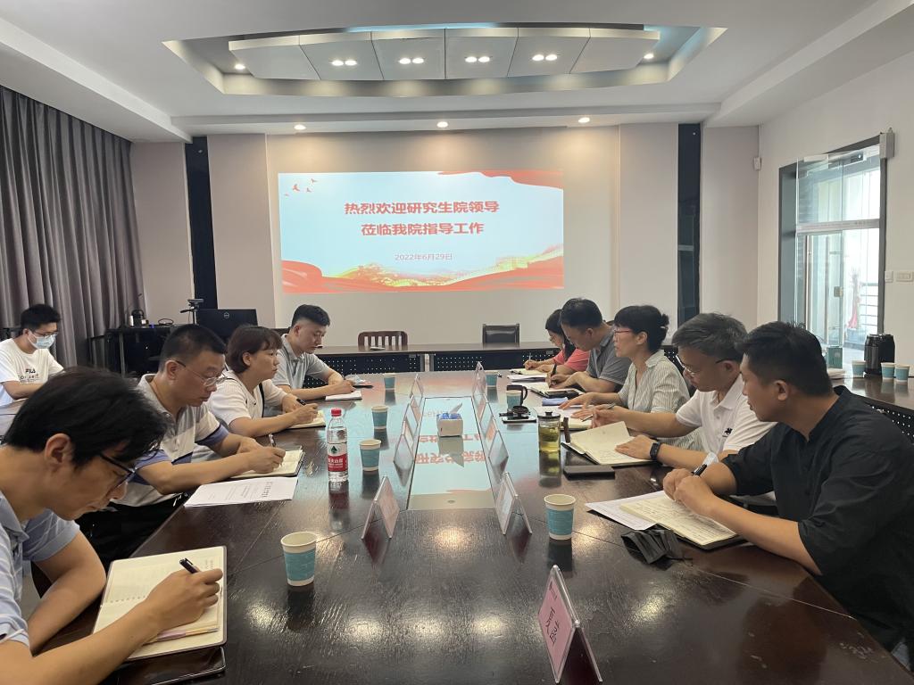 会上,陶辉经理代表公司对研究生院一行的莅临表示欢迎,并介绍了公司学硕和专硕培养、研究生工作站建设、导师队伍建设、职工培养以及研究生学科竞赛等基本情况,同时就公司产品工作中遇到的问题提出意见和建议。杜新年书记感谢公司对公司研究生教育工作的支持,并就公司研究生党建与思想政治教育情况进行了介绍。