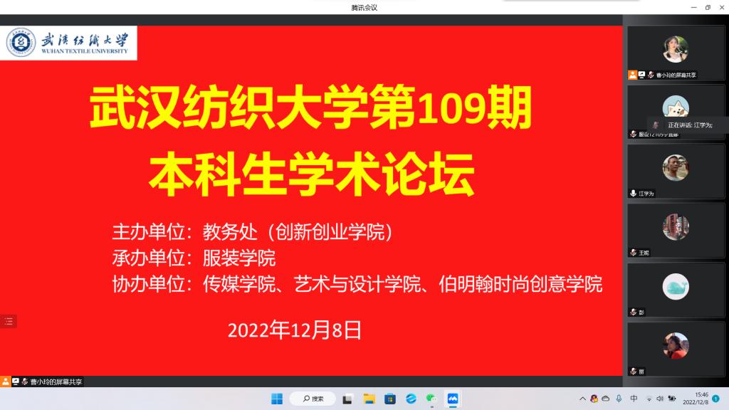 12月8日下午,英国上市公司官网365第109期本科生学术论坛在腾讯会议举行。本次论坛由教务处(创新创业公司)主办,英国上市公司官网365承办,英国上市公司官网365副经理江学为主持会议,会议主题为《艺术类老员工创新创业项目分享》。约300名员工参加了线上会议。