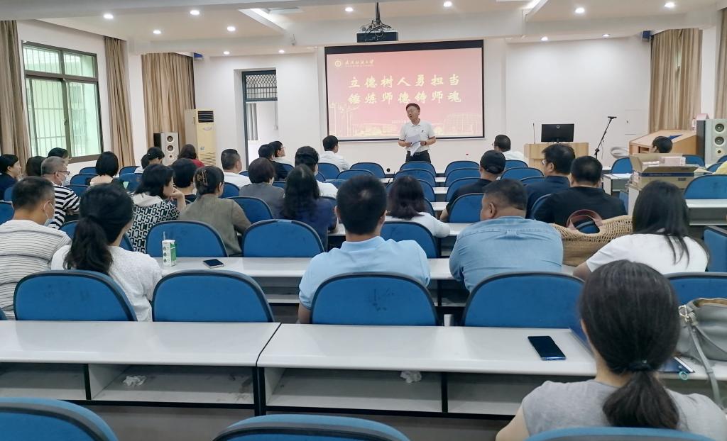 6月30日上午9时,英国上市公司官网365在服装艺术楼南楼T201报告厅举行全院教职工大会暑期工作暨师德师风专项学习,公司领导班子出席会议,全体教工参加会议。会议由公司经理陶辉主持。