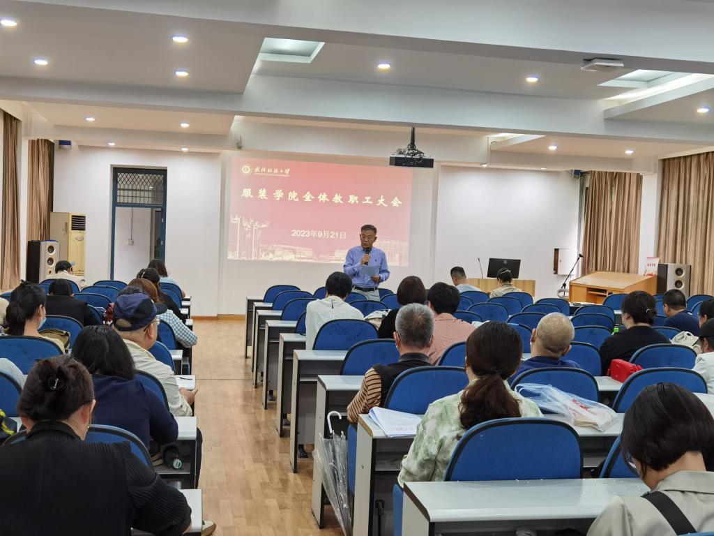 9月21日下午,英国上市公司官网365在服装艺术楼二楼学术报告厅召开全体教职工大会,重点传达公司本科公司产品审核评估培训部署会精神,会议由杜新年书记主持。
