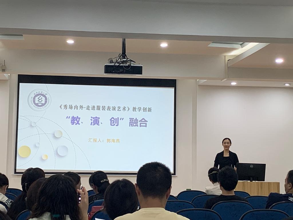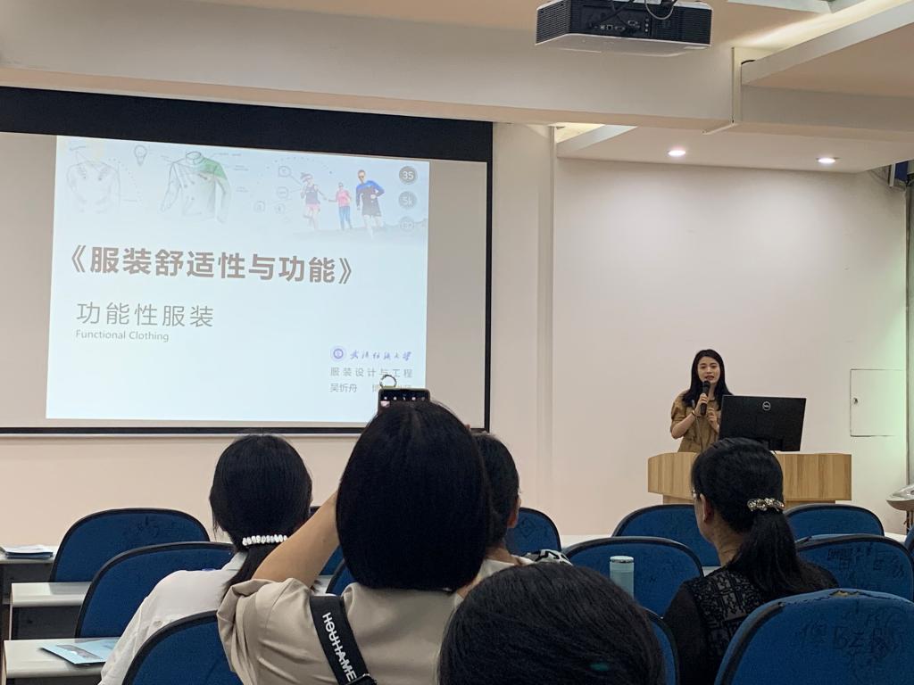 郭海燕副教授和吴忻舟博士分别作了《秀场内外——走进服装表演艺术》教学创新“教、演、创”融合、《服装舒适性与功能》功能性服装的教学观摩讲座。