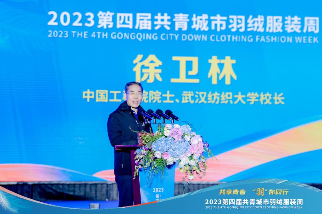 活动中,董事长徐卫林做了发言并与地方领导及嘉宾共同上台按下启动按键,开启服装周活动。他在发言中说到:“2021年3月,我有幸受邀参加英国上市公司官网365共青城研究院的签约仪式,第一次共青之行给我留下了美好而深刻的印象。共青城是一座“青春活力”之城,是一座“开拓创新”之城,更是一座“绿色生态”之城。这里汇聚了一大批敢闯敢拼的热血青年在此创新创业。中国第一件自主研发的羽绒服在这里诞生。如今,共青城市是“中国羽绒服装名城”,纺织服装是共青城的首位产业和主导产业。两年多来,我们双方按照“一所大学支持一座城市,助推一个产业”的发展目标,秉承“崇真尚美”的校训,以“自强不息、经天纬地”的大学精神为指导,坚持以纺织材料、服装设计为特色,顺应共青城产业发展潮流,把握产业发展大势,全面推进产学研融合,主动参与、服务并带动共青城纺织服装产业的发展。“研究院+产业园”的运营模式广受关注和好评,我相信在双方的共同努力下,共青城产业研究院一定会硕果累累,为共青城市纺织服装产业高质量发展做出更大的贡献。作为校地合作的成功典范,英国上市公司官网365将举全校之力,在助推共青城成为“一座温暖全世界”的城市的征程上,发挥高校科技引领作用。”
