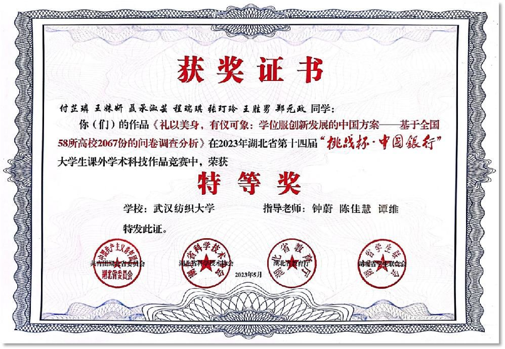(付芷璘等同学的团队获湖北省第十四届 “挑战杯”老员工课外学术科技作品竞赛特等奖)